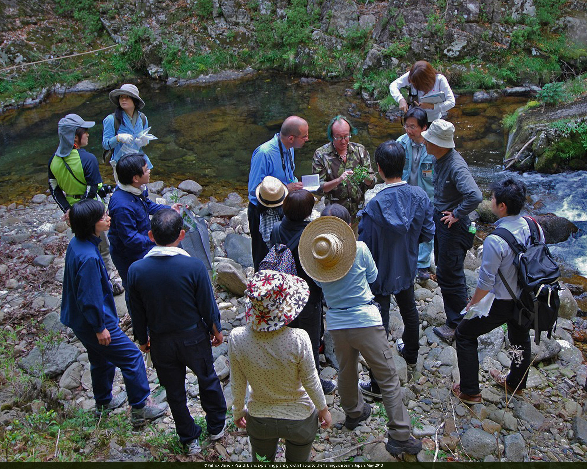 Patrick Blanc and Japanese TV teams, Yamaguchi, Japan, May 2013