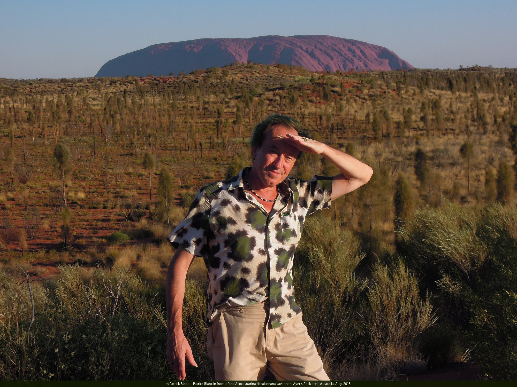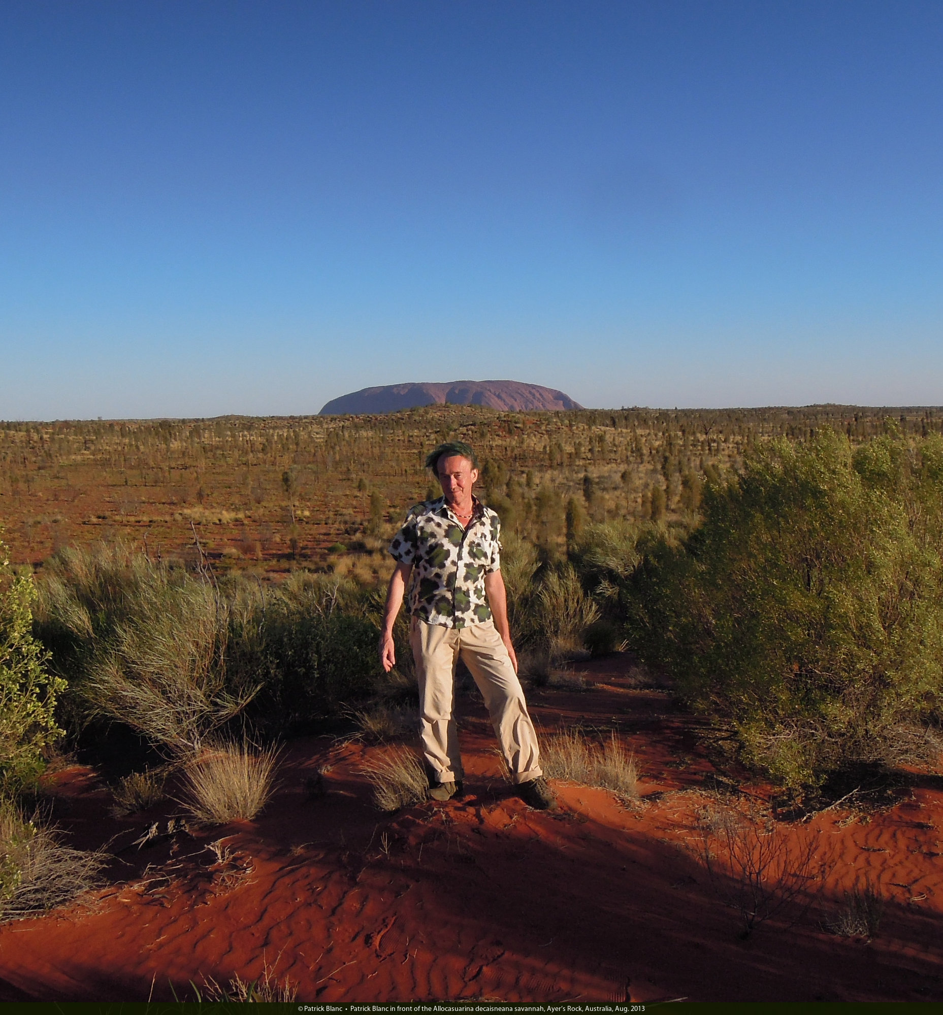 Patrick Blanc in front of the Allocasuarina decaisneana savannah, Ayer's Rock, Australia, Aug. 2013