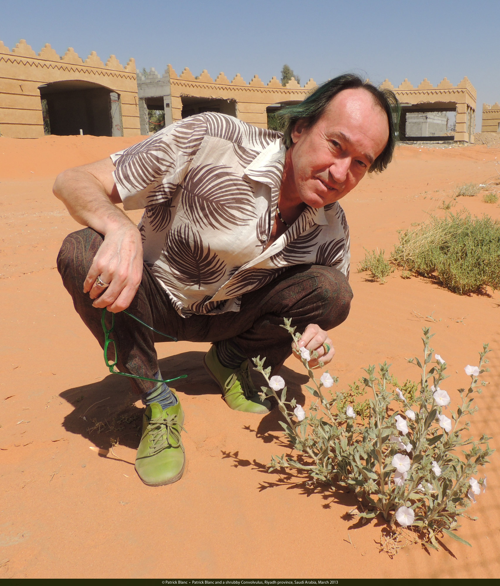 Patrick Blanc and a shrubby Convolvulus, Riyadh province, Saudi Arabia, March 2013