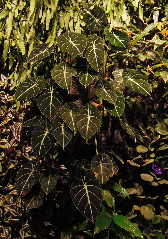 Alocasia reginula 'Black Velvet' on the Vertical Garden, Sofitel Palm Jumeirah, Dubai